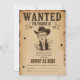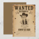 Celebrate a milestone with this humorous "Wanted" poster-themed birthday invitation, perfect for a 40th birthday celebration. Designed with a vintage, Western aesthetic, this invitation features a classic cowboy hat illustration and rustic typography on an aged-paper background. It includes sections for the date, time, location, and RSVP, as well as a playful "Reward" section for cake and fun. This design is ideal for anyone looking to add a bit of outlaw charm to their big 4-0.