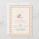 Celebrate a sweet one year old milestone party with this Birthday Invitation featuring a gentle goose holding a pink bow balloon and wearing a funny birthday party hat on a soft pink yellow plaid gingham checkered background. Inspired by a one little goose birthday invitation style, it is perfect for 1st birthday invitations for a baby girl boy kid toddler with ducks geese zoo farm animals charm. Personalize the name date and details to create a keepsake that feels modern trendy cute elegant. Personalize yours today.