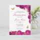 Convite Fusca Dourada, Rosa Quente, Floral, Quimceañera