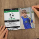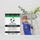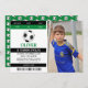 convite de festas de aniversário de criança legal com uma foto da criança de aniversário, e um modelo de festa que é projetado como um passe de futebol.