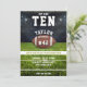 Convite de aniversário 10 do campo de futebol americano. Personalize-o com os detalhes da festa do seu filho. Excelente para fãs e jogadores desportivos.