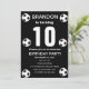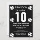 10ª Festa de aniversário para fã de futebol, esportes, crianças, rapazes, para ele. Preto e branco, moderno, convite bolsa mensageifesta de aniversario elegante. Por favor, personalize-o com os seus detalhes.