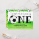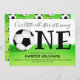 Nossa estrela está fazendo um primeiro convite de aniversário para bebês. Este convite temático é preto, verde e branco com a palavra "um" em letras grandes com uma bola de futebol (futebol) como primeira letra da palavra. Simplesmente, personalize este convite, adicione-o ao seu carrinho e feliz aniversário ao seu maravilhoso bebê! Esporte Um Futebol de Futebol Primeiro Convite de Aniversário Design de Natal | ©Melissa Patton - Artista/Ilustrador