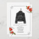 Ilustração de uma jaqueta de couro com "A futura Sra" (personalize o nome) e ilustrações de papoila no canto superior direito e inferior esquerdo com borda de arte.