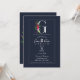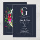 Convite G Monograma Última Inicial Moderna Floral Azul Cas