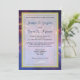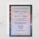 Do convite de casamento cósmico mundial. Fotografia colorida e luminosa de uma galáxia. Uma combinação de cores brilhantes e formações de plasma etéreo faz desta bela foto espacial um prazer de se ver. Uma mistura de violetas vívidas azuis laranja e vermelho tudo girando e misturando com alguns sotaques brilhantes espalhados ao redor cria uma maravilhosa imagem de abstrato. Insira os detalhes do seu casamento em uma camada branca semitransparente com uma borda dupla dourada.