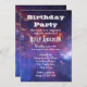 Convite de aniversário. Fotografia colorida e luminosa de uma galáxia. Uma combinação de cores brilhantes e formações de plasma etéreo faz desta bela foto espacial um prazer de se ver. Uma mistura de violetas vívidas azuis laranja e vermelho tudo girando e misturando com alguns sotaques brilhantes espalhados ao redor cria uma maravilhosa imagem de abstrato.