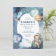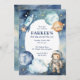 Space Galaxy First Trip Around the Sun Birthday Invitation apresenta ilustrações de aquarela de espaço giro em um fundo pintado estrelado.