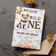 Um filhote selvagem de lobo giro, uma floresta festa de aniversário de convite para modelo de convite instantâneo, com folhas de outono marrons, bom para a festa do inverno do outono.