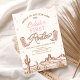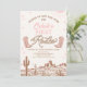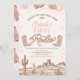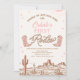 Brown Pink CowGirl Boots First Rodeo primeiro aniversario Convite Pink e estilo de vintage da menina marrom Primeiro convite de aniversário de rodeio com uma paisagem desértica com cacto, botas de cowgirl, sol rosa e uma corda como texto. O primeiro convite de aniversário de rodeio desta rapariga é ideal para uma primeira festa de aniversário de temas ocidentais selvagens, mas pode ser utilizado para qualquer idade, uma vez que todo o texto é editável.