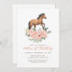 Convite Galope sobre Cavalo Floral Rosa Aniversário