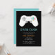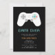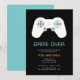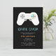 Convite de tema de jogo divertido para despedidas de solteiro ou fins de semana de despedida de solteiro apresenta um controle de jogo com "game over" e detalhes da sua festa em letras digitais retrô.