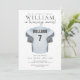 Kick off your little athlete’s special day with this watercolor football birthday invitation featuring a gray and blue jersey design. The sporty yet modern layout highlights your child’s name and age, creating a personalized game day celebration invite.