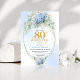 Convite Garden Blue Floral Gold 80th Birthday Invitation