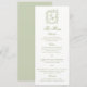 Convite Garden Wedding Sage Green Monogram Crest Menu Card