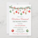 Convite de Natal festivo com uma terra natalícia e bálpebras de ornamento. Perfeito para uma festa de troca de Enfeites de natal. As palavras podem ser alteradas para se adequarem aos seus próprios detalhes ou requisitos