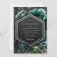 This dramatic wedding design features a moody and opulent floral arrangement. Deep garnet and vibrant teal blossoms emerge from a dark, shadowy background, creating a sense of rich romance. The painterly style, reminiscent of old master still-life paintings, is perfect for an elegant, artistic union.