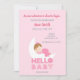 Uma garotinha está a caminho! Uma nova aventura está prestes a começar! Vamos chá a futura mãe! Este convite para chás cor-de-rosa para bebê, mínimo mas atrativo, é perfeito para a ocasião. Ele apresenta um bebê dormindo na lua em tons cor-de-rosa. No verso, há um padrão cor-de-rosa macio de coisas para bebês silhuetas: uma garrafa, um chocalho, um pacificador, um coração, e um pato de borracha. Este modelo de convite para chá de de menina pode ser facilmente personalizado com seus detalhes de chá de fraldas, e você pode alterar a fonte, o tamanho ou a cor de qualquer texto, com exceção de Hello Baby.