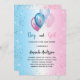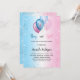 Para um chá de fraldas para um bebê e uma menina. Um plano de fundo azul branco e rosa. Decorados com balões claros e azuis, cor-de-rosa e branco e poeira brilhante. Personalize e adicione o nome da futura mãe e os detalhes da festa. O nome e o texto: Boy ou Girl são escritos com um estilo escrito à mão