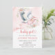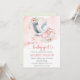 "Celebre a chegada de uma doce menina com este charmoso convite de chá de fraldas 'Stork Delivery'! Apresentando um adorável carregando de cegonha um monte de alegria, é a maneira perfeita de convidar os entes queridos para um cheio de amor, riso e entusiasmo."