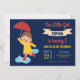 Incomode seus hóspedes com este convite de aniversário sobre o tema da chuva giro, com uma garota fofa segurando um guarda-chuva laranja com tipografia vibrante contra um fundo azul escuro. Basta adicionar os detalhes do seu evento neste modelo fácil de usar para torná-lo um convite de tipo único. Sacudir a placa para revelar um padrão de queda de chuva na parte traseira da placa.