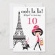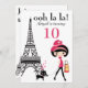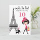 Convite Garota Bonita e Gato Paris Eiffel Torre Aniversári