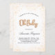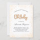 Para um chá de fraldas, neutro em termos de gênero. Um fundo branco. Decorado com pó sujo de ouro. Personalize e adicione o nome da mãe e os detalhes da festa. Oh Bebê é escrito com um script/fonte estilo balão.