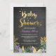 Convite para giz e Chá de fraldas roxo com texto dourado. Adequado para um chá de fraldas ou chá de fraldas do Mães. Impressão da bolinhas traseira incluída.