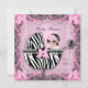Convite Garota Chá de fraldas de zebra rosa, Cinza rosa