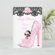Chá de fraldas Afro-Americana, Cute Baby in High Heel Chá Baby Girl Rosa Lace White Impressão Convite de fita, adorável bebê novo, menina linda