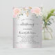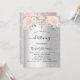Um convite moderno, na moda e glamouroso para um batismo celebrando uma menina. Um fundo metálico prateado falsa com brilho falso rosa, faíscas e florais cor-de-rosa. O nome é escrito com um moderno estilo escrito à mão. Personalize e adicione seus detalhes.