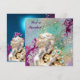 Convite GAROTA COM FLORES EM BRILHOS DOURADOS, Safira Azul