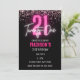 Convite Garota de aniversário de 21 anos Neon Rosa
