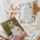 Este primeiro convite de aniversário apresenta flores silvestres de aquarela e borboletas de monarca bonitinhas com uma foto opcional no verso. Este convite é perfeito para o seu evento temático de "flor silvestre". Par com qualquer coisa na coleção CAMILLA para um olhar coeso.