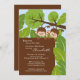 Convite para Chás de fraldas Adorable Twins, com um par bonito de gêmeos macacos, em um fundo de folha de selva. Itens correspondentes disponíveis em nosso compro. Perfeito para o rapaz, chá de fraldas de gêmeos.