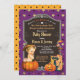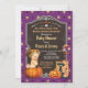 Convite Garota do Dia das Bruxas casal chá ouro roxo