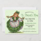 O convite apresenta uma ilustração vintage do Dia de São Patrício com uma garota dançando com tranças longas, vestido verde, avental branco e xales xadrez verdes.