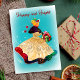 Natais vintages, convite para a garota da caixa de dourada. Vintage, doce cartão de Natal. Perfeito para colecionadores de vintage ou para enviar cartões para a família ou amigos durante o feriado. Para torná-lo mais especial, ele é embelezado com belos brilhos glamourosos. Este design também pode ser transferido para qualquer produto no zazzle, incluindo uma placa de férias dobrada. Você pode personalizá-lo com seu próprio texto e informações. NOTA: Estes são gráficos impressos - sem brilho real, joias ou peças levantadas.