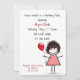 Convite Garota festa de aniversário com balão vermelho