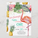 Convite Garota Flamingo, Rosa, de Watercolor, Primeiro Ani