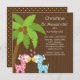 Comece a sua festa de gêmeos com nosso convite de festas de aniversário de criança giro giro, com a girafa rosa mais doce e girafa azul, com uma palmeira de fundo marrom e bolinhas amarelas de volta. Nossos bonitos convites de girafas gêmeas adoram seus gêmeos para o aniversário especial! Apenas personalize com suas informações e você está pronto para ir! Itens correspondentes, incluindo selos de postagem de aniversário, adesivos de favoritos, cartões de agradecimento e obrigado que você também está disponível em nosso compro. ©Zenware Designs