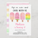 Este adorável convite apresenta picolés pintados manualmente em cores pastel.