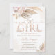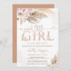 Convite Garota Rosa Boho Pampas Grass Chá de fraldas