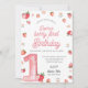 Convite Garota Rosa Morango Berry Primeiro Aniversário