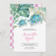 Este convite de aniversário de uma garota fofa apresenta tartarugas marinhas, folhas de palma de monstera e ondas oceânicas. A carta se reverte para um padrão de gingham rosa-elogioso com folhas de palma de monstera adicionais. Uma escolha tropical e divertida para um convite para uma rua, segundo ou aniversário de 3 anos. Para ver a suíte de convites correspondente, visite www.zazzle.com/dotellabelle Arte e design de aquarela únicas por Victoria Grigaliunas do Do Tell A Belle no Zazzle