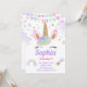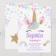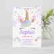 Convite Garota Unicórica Pastel Mágico Arco-Íris Rosa Aniv