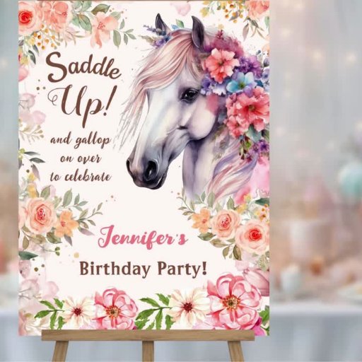 Girls Horse 1st Birthday Pink Flowers CollectionCriado por H-Art Studio Design