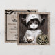 Convites de festas de Halloween assustadoras. Criança estranha com grandes olhos assustadores e um convite assustador de abóbora e ursinho.