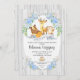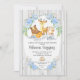Celebre a chegada de seu novo pacote de alegria com este Chá de fraldas de Animais Florestais de Floresta Chic. Convite Personalizado. Apresentando animais de madeira de cor aquática e belos azuis florais.