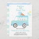 Este convite bonito apresenta um caminhão de sorvete pintado manualmente com sorvete e balões em cores pastéis.